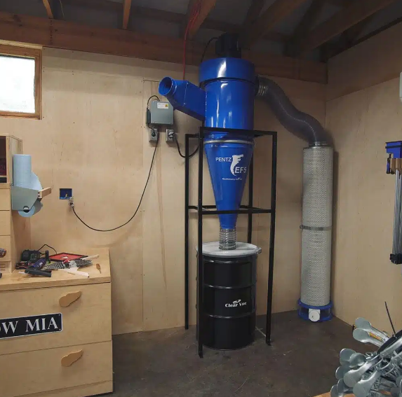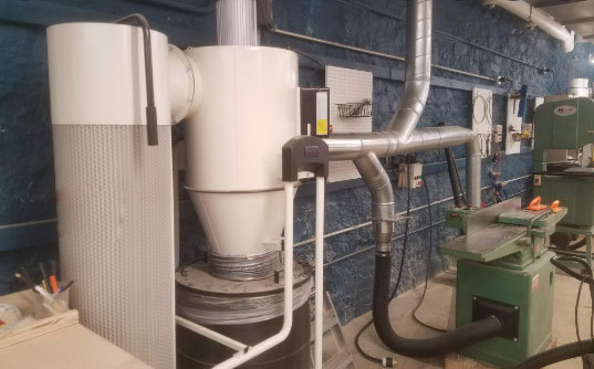 Adding a cyclone pre-separator catches large particles before the filter bags. Extends filter life. Adds 2 to 4 in. w.g. of system resistance. Suction at tool ports drops. Measure branch velocity with an anemometer after installation. If below 3,500 FPM, spin the blower faster (smaller motor pulley on belt-drive units) or reduce duct resistance elsewhere.