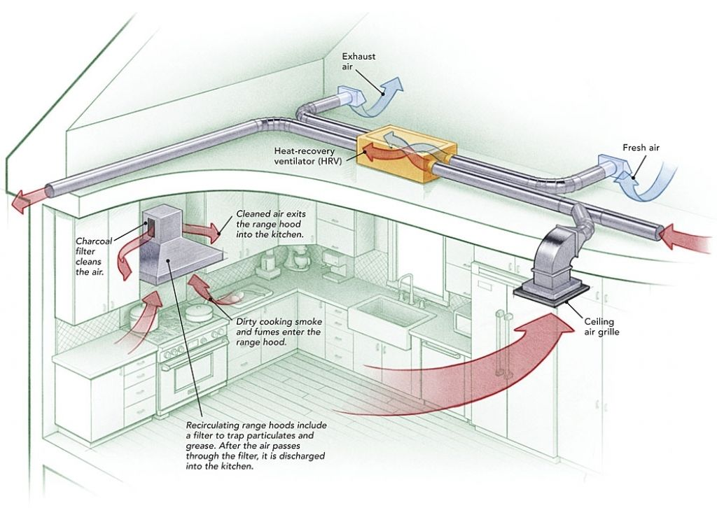 Whatever volume the exhaust removes, the same volume has to enter the building. Negative pressure in a building with natural-draft gas appliances can reverse the flue. Combustion gases including carbon monoxide come back indoors instead of going up and out.