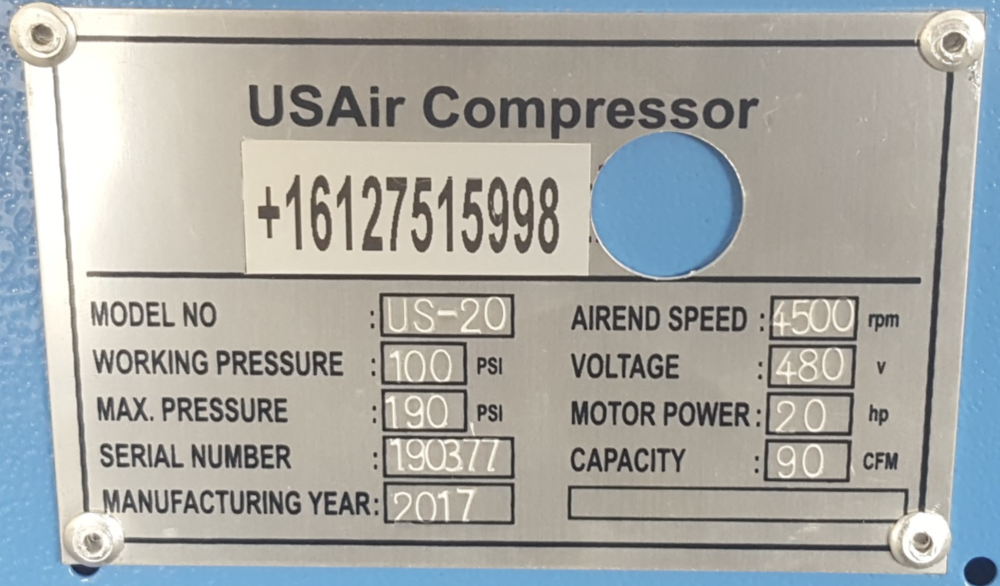 Air compressor nameplates come in two pieces. Unit nameplate on the compressor body, motor nameplate on the motor. They describe different things and should be read separately.