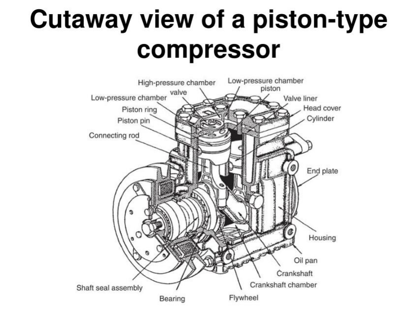 Start with the valves. On a cheap small compressor, the suction and discharge valves are usually single stamped steel plates held closed by a spring. When the piston moves down and creates a pressure differential across the suction valve, the plate lifts off its seat and gas flows through the annular gap between the plate and the seat. The flow area of that annular gap, relative to the bore area, is terrible. Gas loses pressure fighting through the restriction on both the suction stroke and the discharge stroke. Every millibar of pressure lost on the suction side means less driving force pulling fresh air into the cylinder, and every millibar lost on the discharge side means the piston has to push the gas to a slightly higher pressure to get it through the valve, which raises the effective compression ratio and makes everything downstream worse.