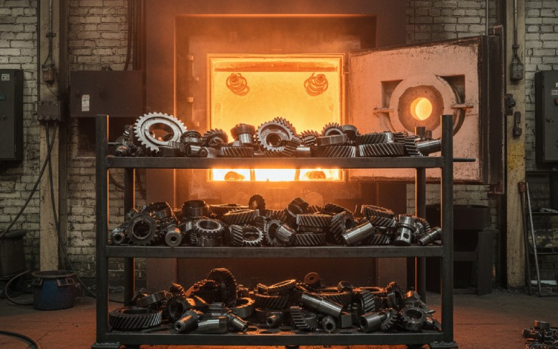 Nitriding at 500 to 580°C for oil-injected rotors. Occurs below austenitizing temperature, so distortion stays minimal, so less finish grinding stock, so shorter grind cycles, so lower burn risk. The downstream benefits propagate through the entire process chain. Carburizing at 850 to 950°C gives deeper case and substantially more distortion, which means more grinding, which means more cost and more thermal risk. Nitriding won.