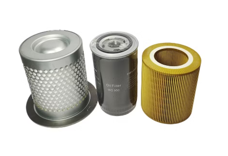 Oil separator element. Fiberglass. New differential 0.2 bar. Replace at 0.8 to 1.0 bar. Deferred changes blow oil downstream, destroy precision filters, contaminate piping.